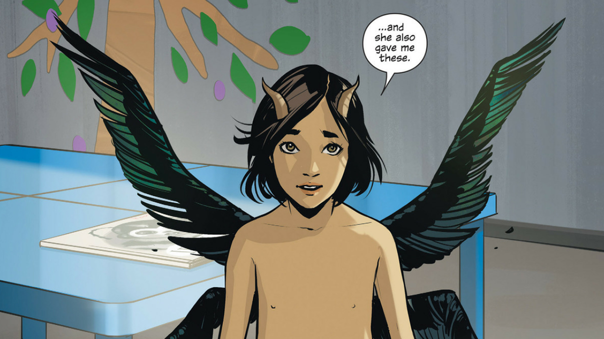 The daughter of the two lead characters, born in the first issue, who occasionally narrates the series. She has wings like her mother, horns like her father, and green-brown eyes unlike those of either of her parents. She spends most of her childhood growing up in the organic tree-like rocketship with which she and her parents escape Cleave. She is seen taking her first steps at the end of the third story arc, and is speaking in simple phrases by the beginning of the fourth. She celebrates her fourth birthday in the sixth story arc, during a part of her life when she and her grandmother are being held in a Landfallian detention center.